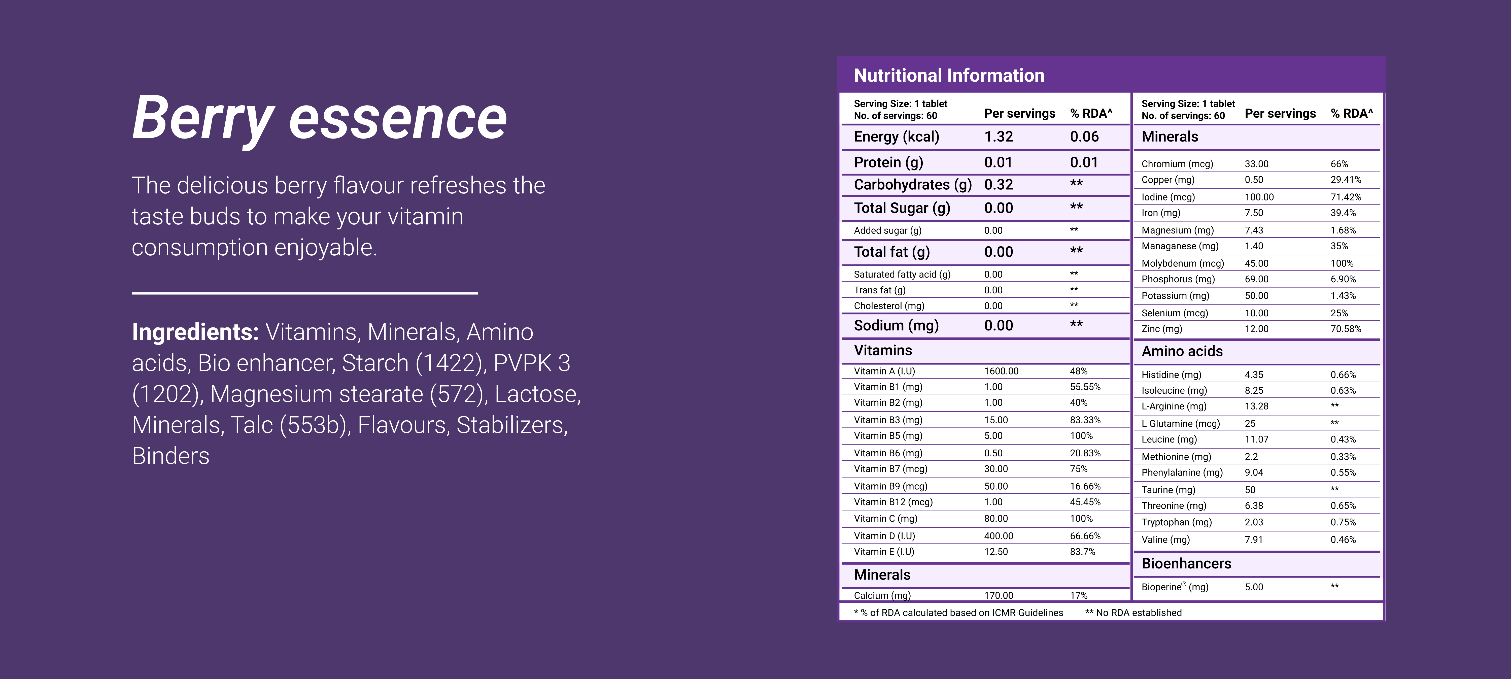 I have tried many multivitamins but these tablets are different than others. It berry essence is very nice. Also they are very small in size so it is not hard to swallow. Waiting to see significant results.